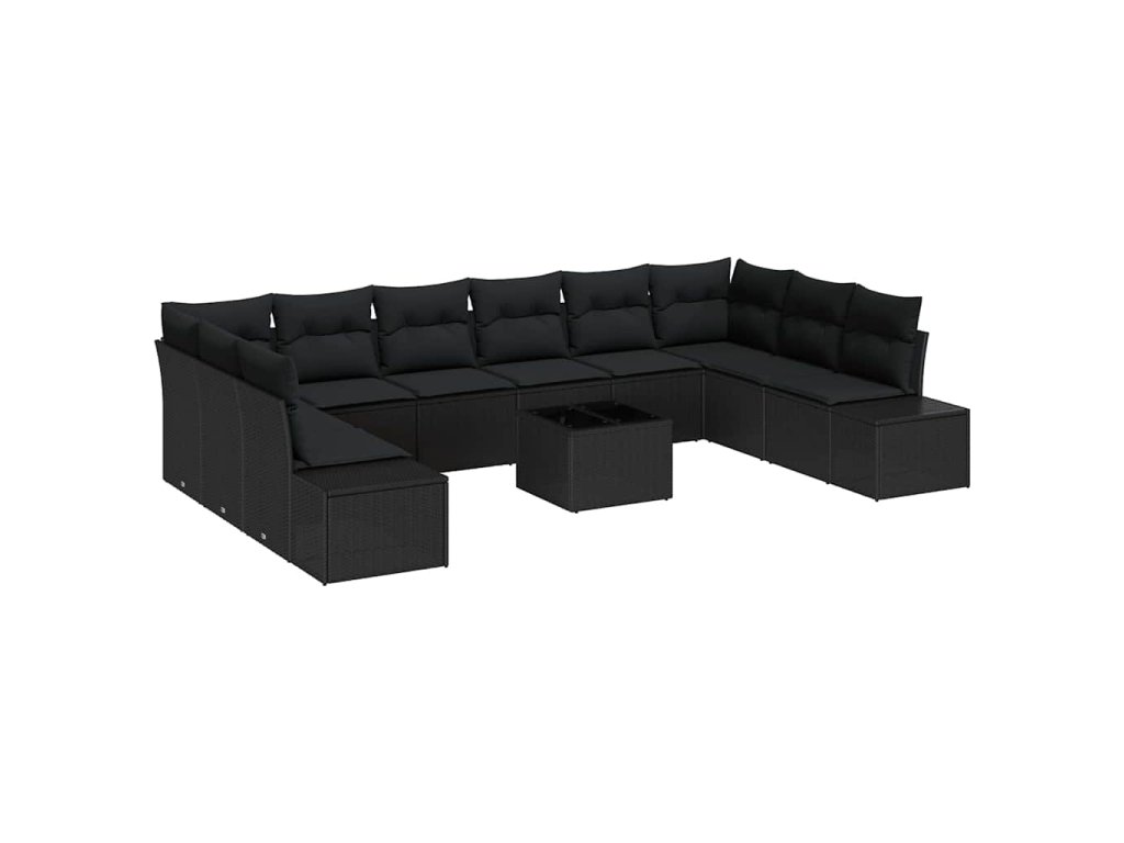 Sada zahradních pohovek s polštářem 11 pcs Černá Poly Ratan