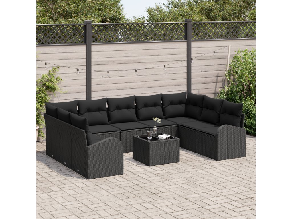 Sada zahradních pohovek 10 pcs Černá Poly ratan