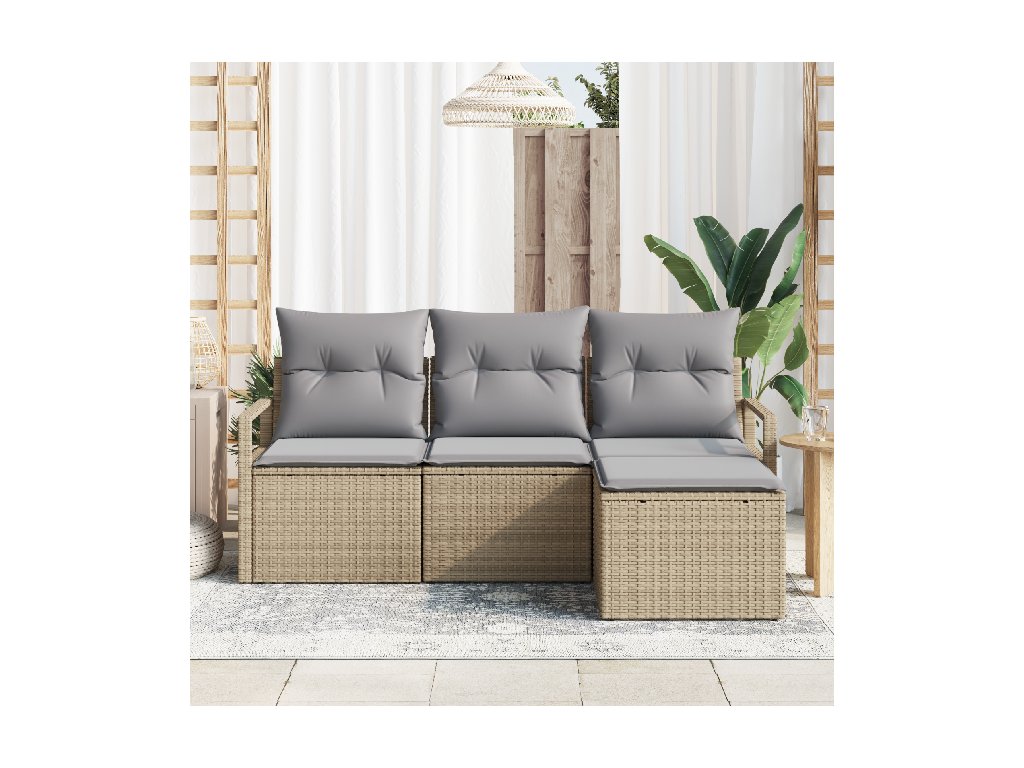 Materiály: Konstrukce z poly ratanu je robustní a odolná vůči nepříznivým podmínkám, včetně UV záření. Tkaný materiál dodává eleganci a je ideální pro použití venku během jara a léta. Součásti: Zahradní pohovka se skládá ze středního sedáku, dvou bočních pohovek a podnožky. Polštáře plněné pěnou zajišťují pohodlí, oporu má na robustním rámu z práškově lakované oceli. Zipy umožňují snadné sejmutí a údržbu polštářů. Dokončená zadní část a ploché opěrky rukou zajišťují dokonalý vzhled ze všech stran. Funkce / design: Modulární uspořádání lze přizpůsobit různým prostorům, aniž by se obětoval komfort nebo estetika. Ideální pro ty, kteří mají rádi flexibilní a stylový venkovní nábytek. Doporučené použití: Perfektní na zahrady, terasy a venkovní prostory. Vytváří příjemné místo pro setkání i klidné chvíle odpočinku. Ať už hostíte nebo si užíváte osamělost, s těmito kusy se do každého venkovního prostředí dodá šmrnc. Údržba: Zakryjte pohovku, když ji nepoužíváte, aby se chránila před nepřízní počasí a zůstala v bezvadném stavu. Pravidelně ji čistěte suchým hadrem, abyste udrželi její luxusní vzhled.- Barva: Béžová