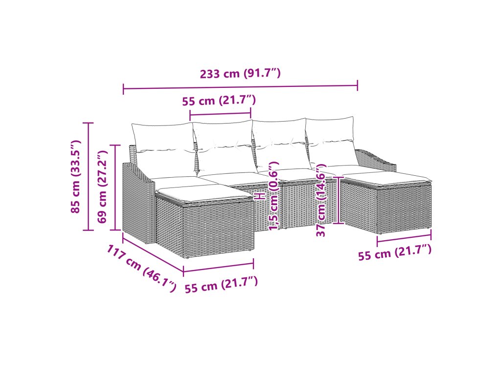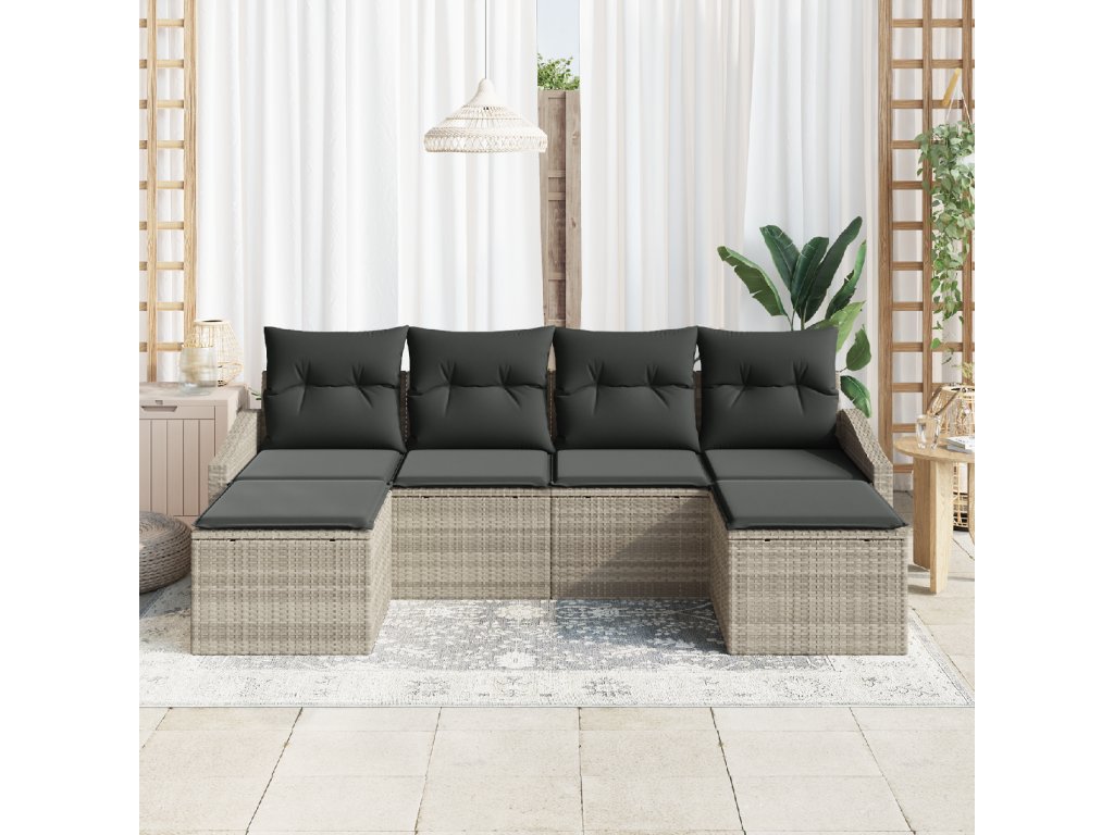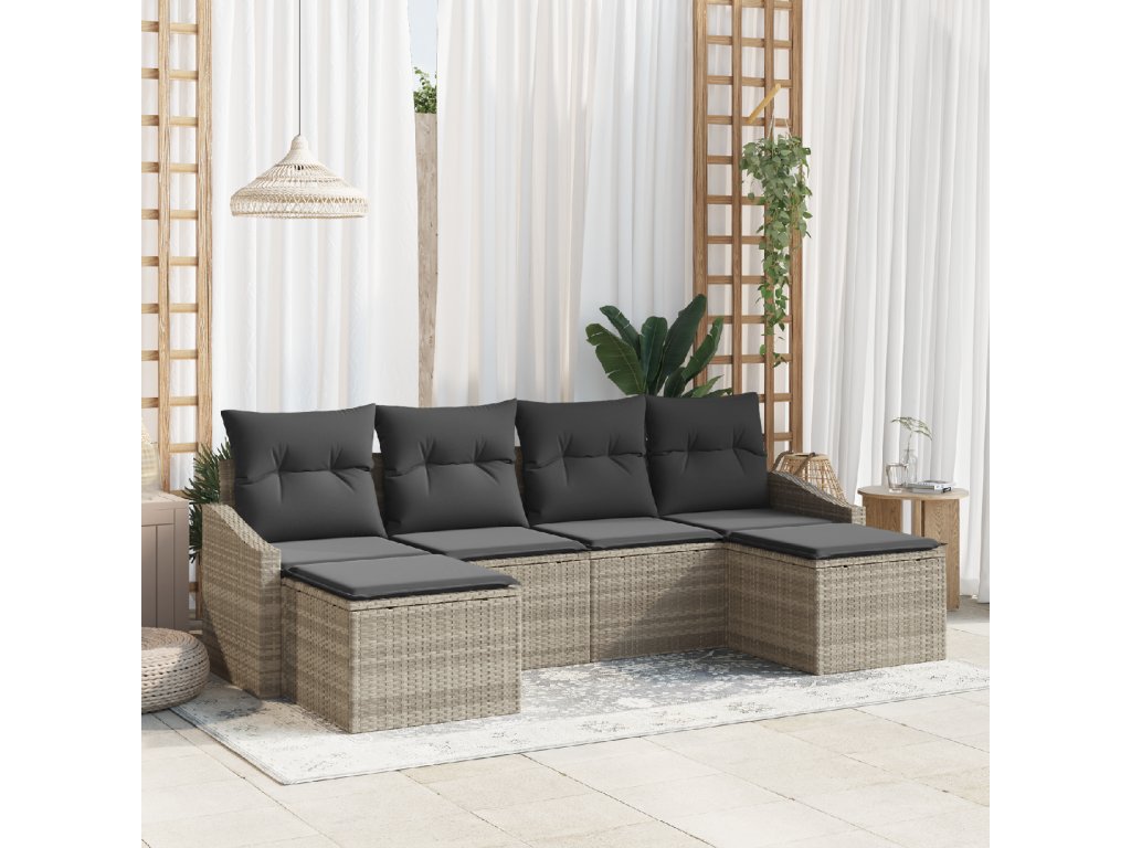 Set pohovek s polštářem 6 pcs Světle šedá polyratan