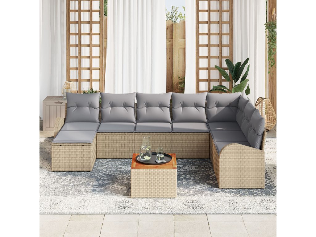 Sada zahradních pohovek s polštářem 9 pcs Béžová Poly ratan