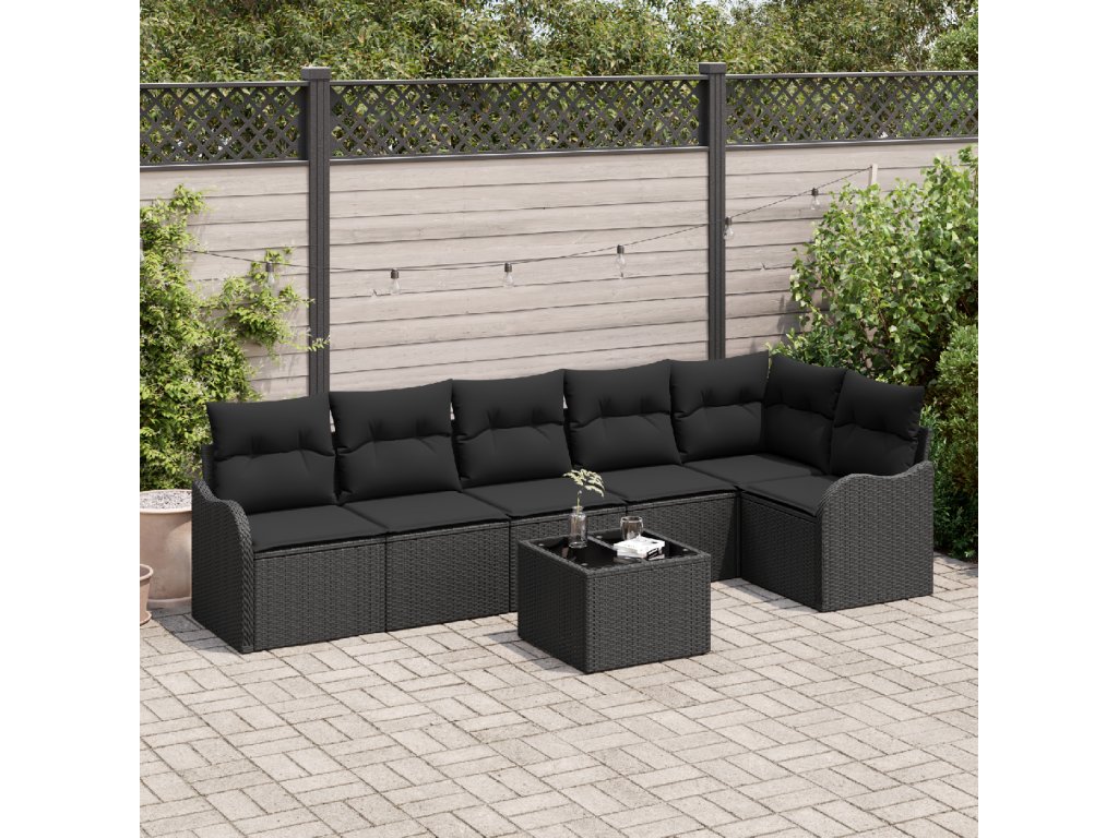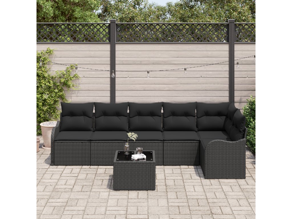 Sada zahradních pohovek s polštářem 7 pcs Béžová Poly ratan