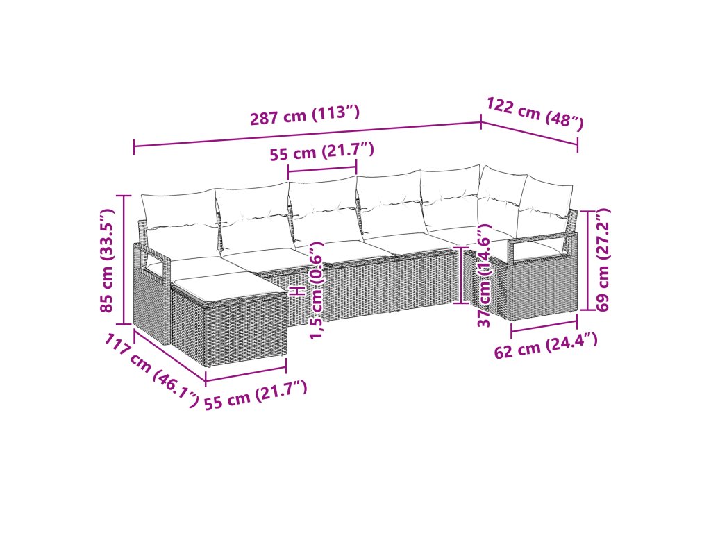 Set pohovek s polštářem 7 pcs Béžová polyratan