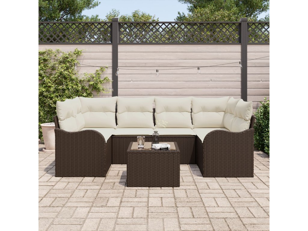 Materiály z poly ratanu a oceli Sedací souprava se chlubí robustní konstrukcí z poly ratanu a práškované oceli, která spojila vzhled s trvanlivostí. Poly ratan dodává vizuální přitažlivost, zatímco ocelový rám zajistí stabilitu. Tato kombinace povzbuzuje luxusní dojem a zajišťuje odolnost vůči povětrnostním vlivům, takže si užijete dlouhotrvající radost. Kompletní design komponentů Souprava nabízí více prvků: rohové a středové sedáky a arm sofa, všechny s pohodlnými opěrkami rukou. Stůl s tvrzeným sklem doplňuje celkový vzhled a poskytuje praktické řešení pro umístění různých věcí. Tyto komponenty usnadňují variabilní uspořádání a rychle se přizpůsobí vašim potřebám. Funkce a výhody Sedací souprava má odnímatelné potahy polštářů pro snazší údržbu. Její modulární design umožňuje rozšiřování podle aktuálních potřeb. S odolnými UV materiály si stále zachovává živé barvy na slunci, čímž si udržuje atraktivitu a funkčnost během slunečných dní. Všestranné možnosti použití Ideální pro terasy, zahrady a zahrádky, tato souprava se skvěle hodí do různých venkovních prostor. Vytvořte si zábavné rodinné chvíle nebo si užijte klidnou relaxaci. Díky jejímu flexibilnímu designu se snadno přizpůsobí jakékoli venkovní atmosféře nebo vašim preferencím. Údržba a péče Udržujte soupravu v super stavu tím, že ji po použití otřete vlhkým hadříkem. Při špatném počasí používejte ochranné kryty. Odnímatelné potahy polštářů se snadno perou, a materiály soupravy potřebují minimální péči, aby zůstaly svěží během celé sezóny.- Barva: Hnědá