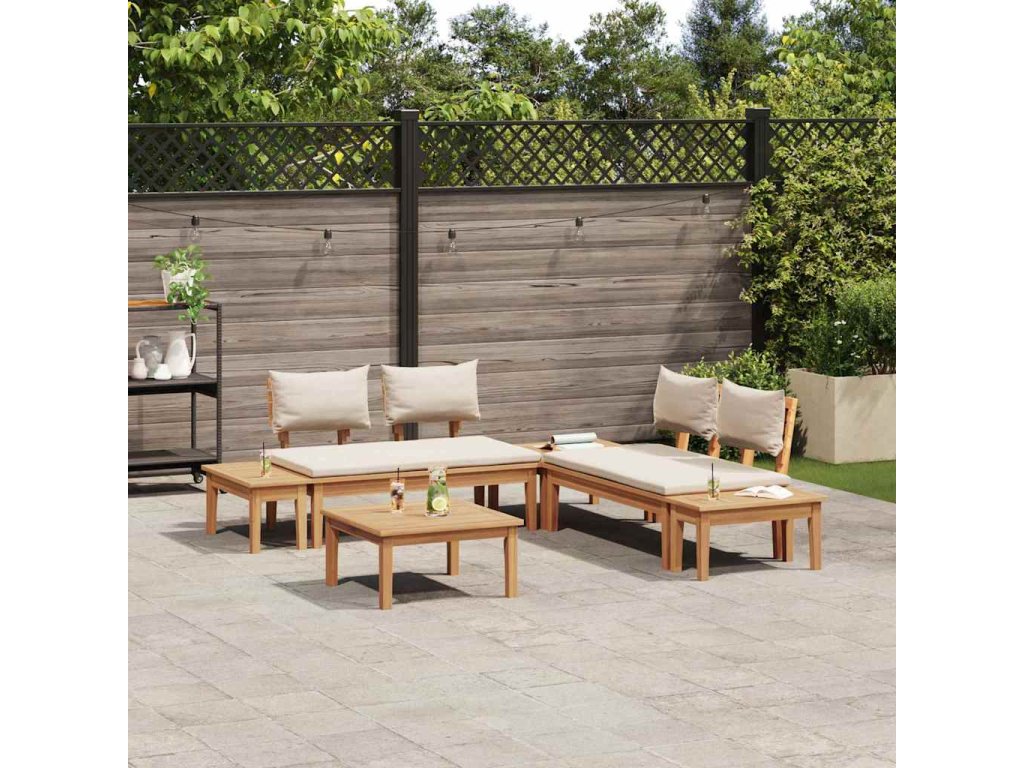 - Materiály: Tato sada spojuje krásný masivní teak na rámu a zádech s praktickými polyesterovými polštáři, což ji dělá atraktivní a funkční. Bohatá textura dřeva dodává každému venkovnímu prostoru elegantní nádech, zatímco polyester je odolný vůči různým povětrnostním podmínkám.
