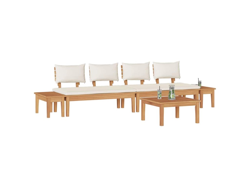Sada zahradních laviček s polštářem 5 pcs Hnědá a krémová