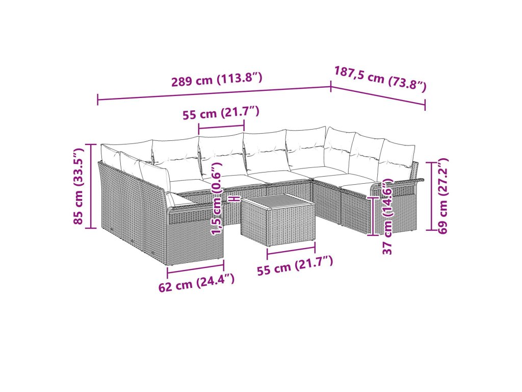 Sada zahradních pohovek 10 pcs Černá Poly ratan
