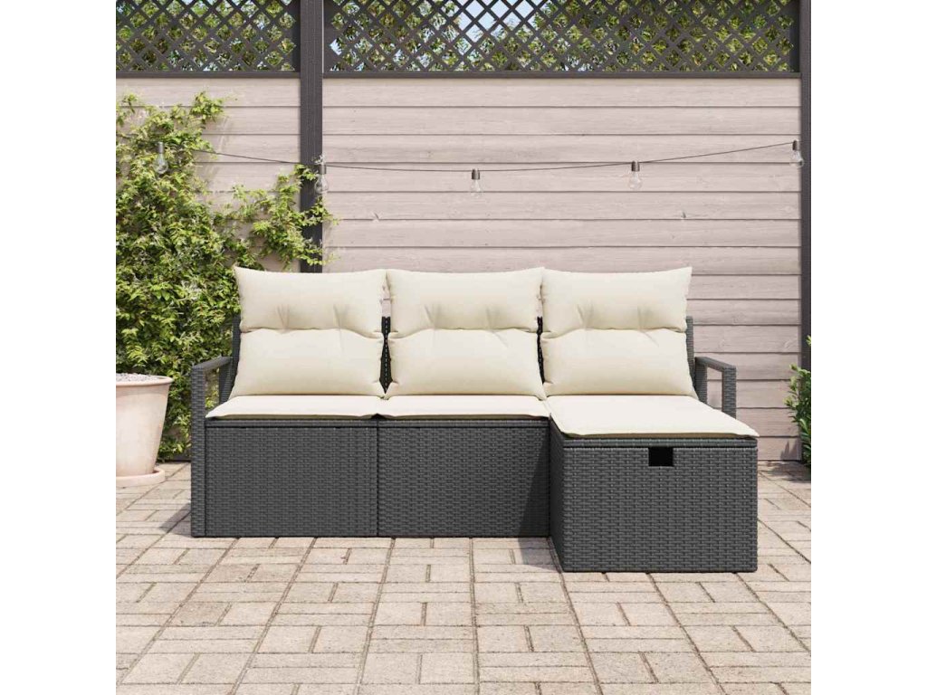 Set pohovek s polštářem 4 pcs Černá a krémová polyratan