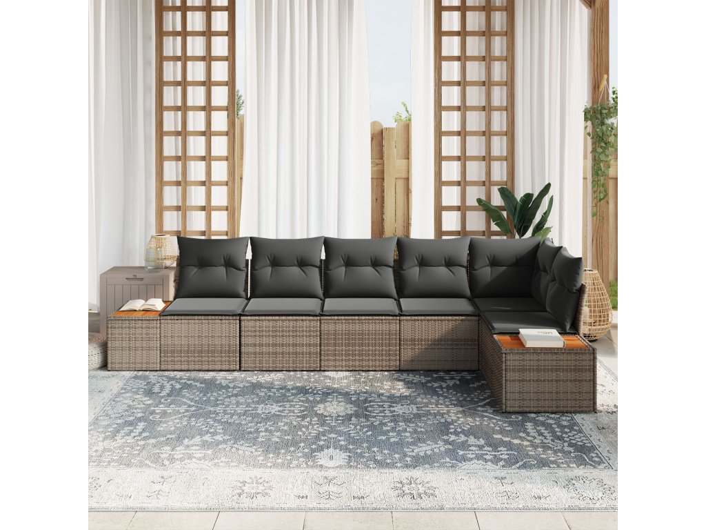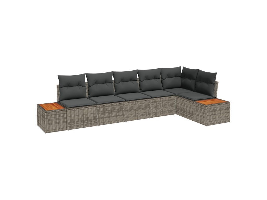 Sada zahradních pohovek s polštářem 6 pcs Šedá Poly ratan