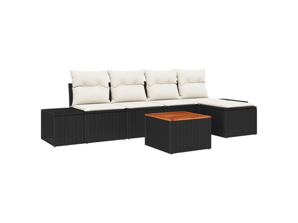 Sada zahradních pohovek s polštářem 6 pcs Černá Poly ratan
