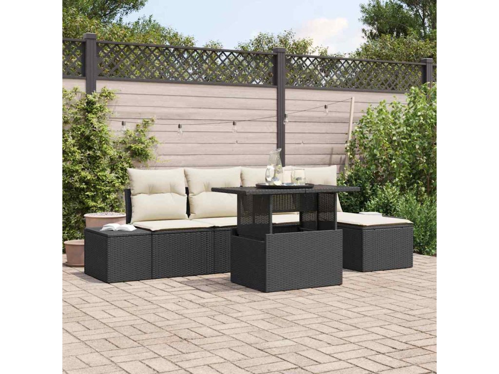 Sada zahradních pohovek s úložištěm 6 pcs Černá Poly ratan