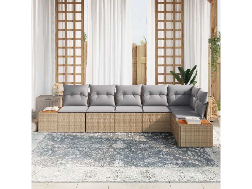 Sada zahradních pohovek s polštářem 6 pcs Béžová Poly ratan