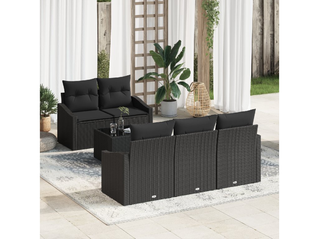 Set pohovek s polštářem s úložištěm 6 pcs Černá polyratan