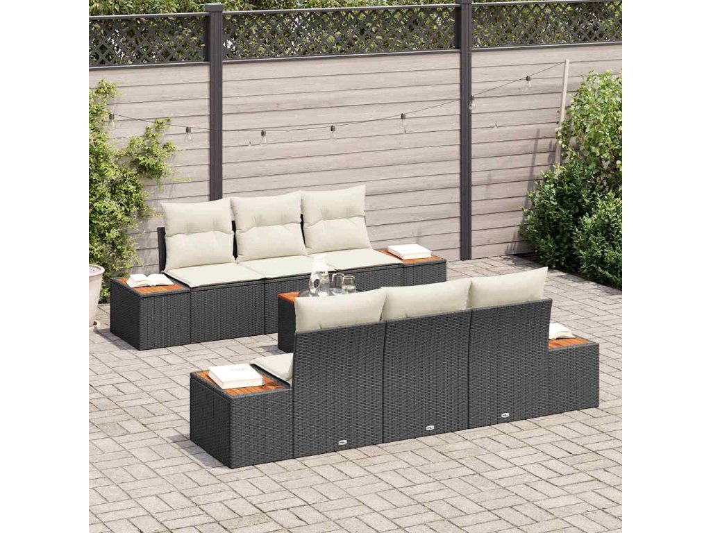 Sada zahradních pohovek s polštářem 7 pcs Černá Poly ratan