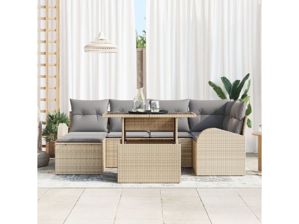 Sada zahradních pohovek s polštářem 7 pcs béžová a světle šedá