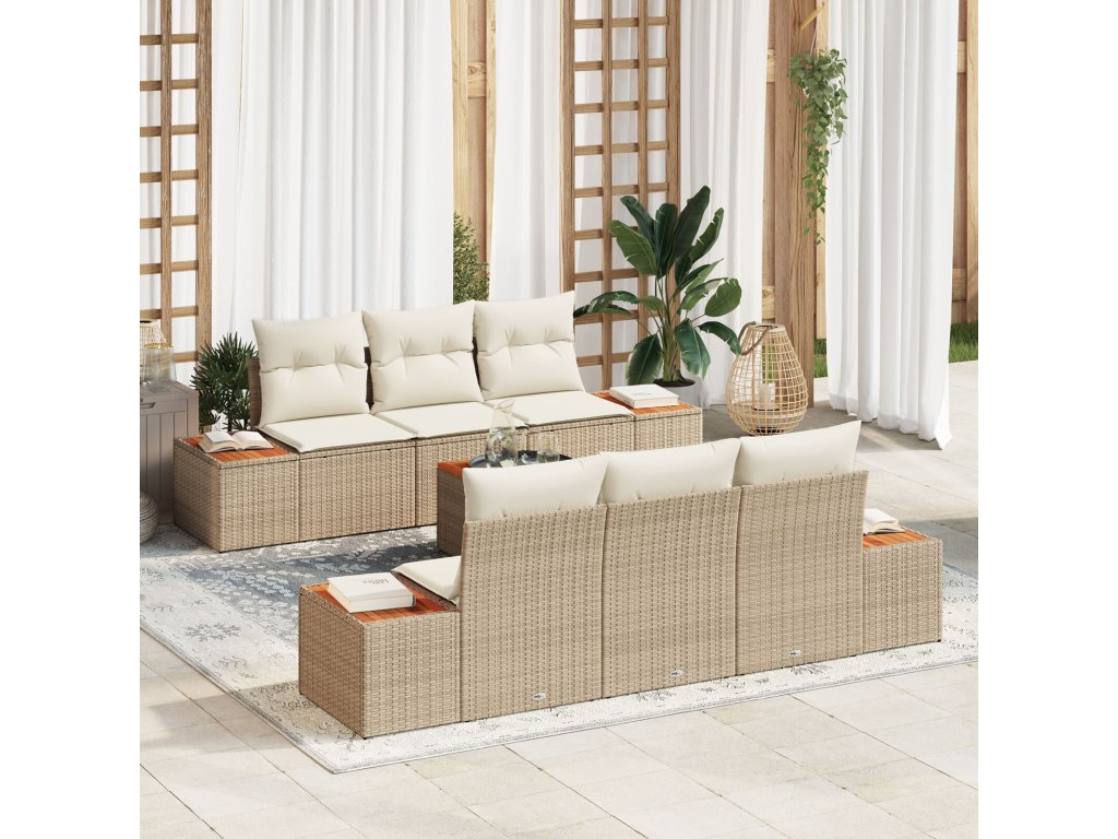 Sada zahradních pohovek s polštářem 7 pcs Béžová Poly ratan