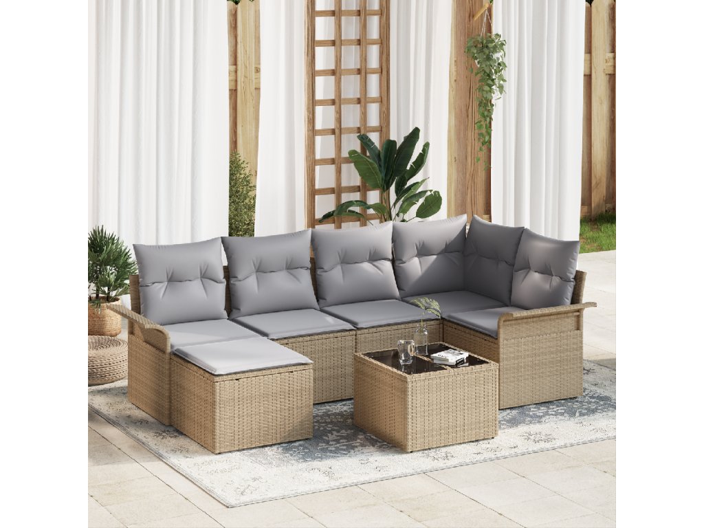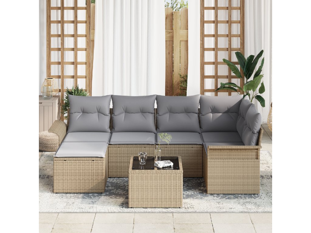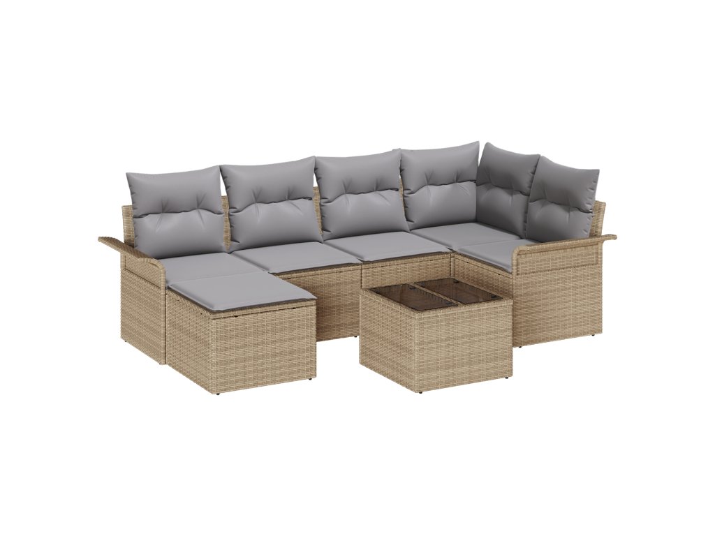 Sada zahradních pohovek s polštářem 7 pcs Béžová Poly ratan
