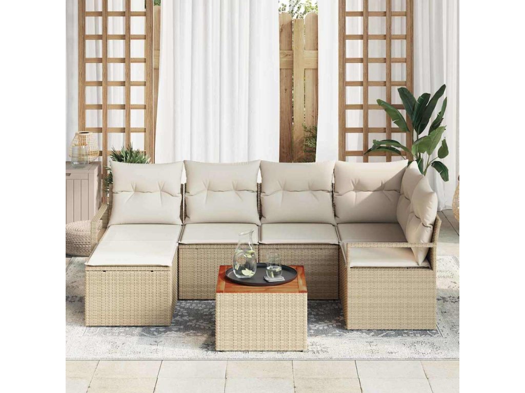 Sada zahradních pohovek 7 pcs Béžovo-bílá