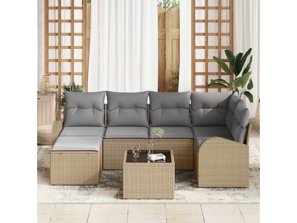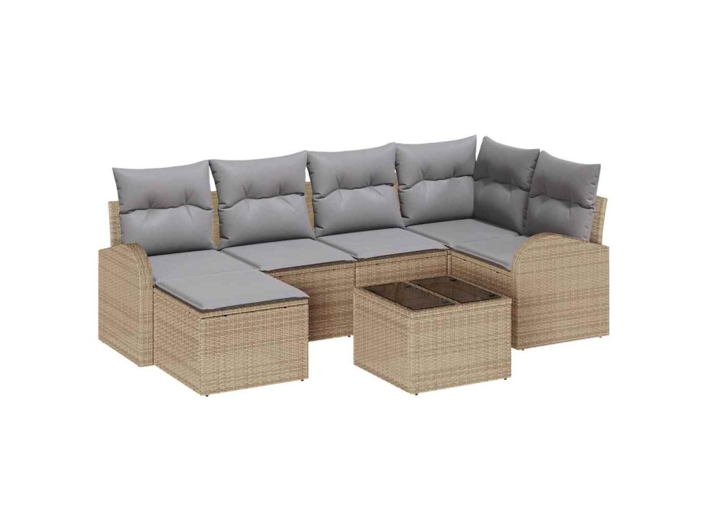 Set pohovek s polštářem 7 pcs Beige a světle šedá polyratan
