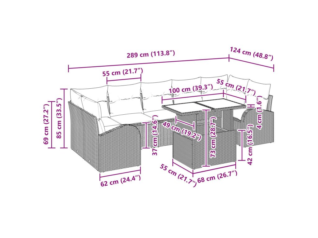 Sada zahradních pohovek s polštářem 8 pcs Černá Poly ratan