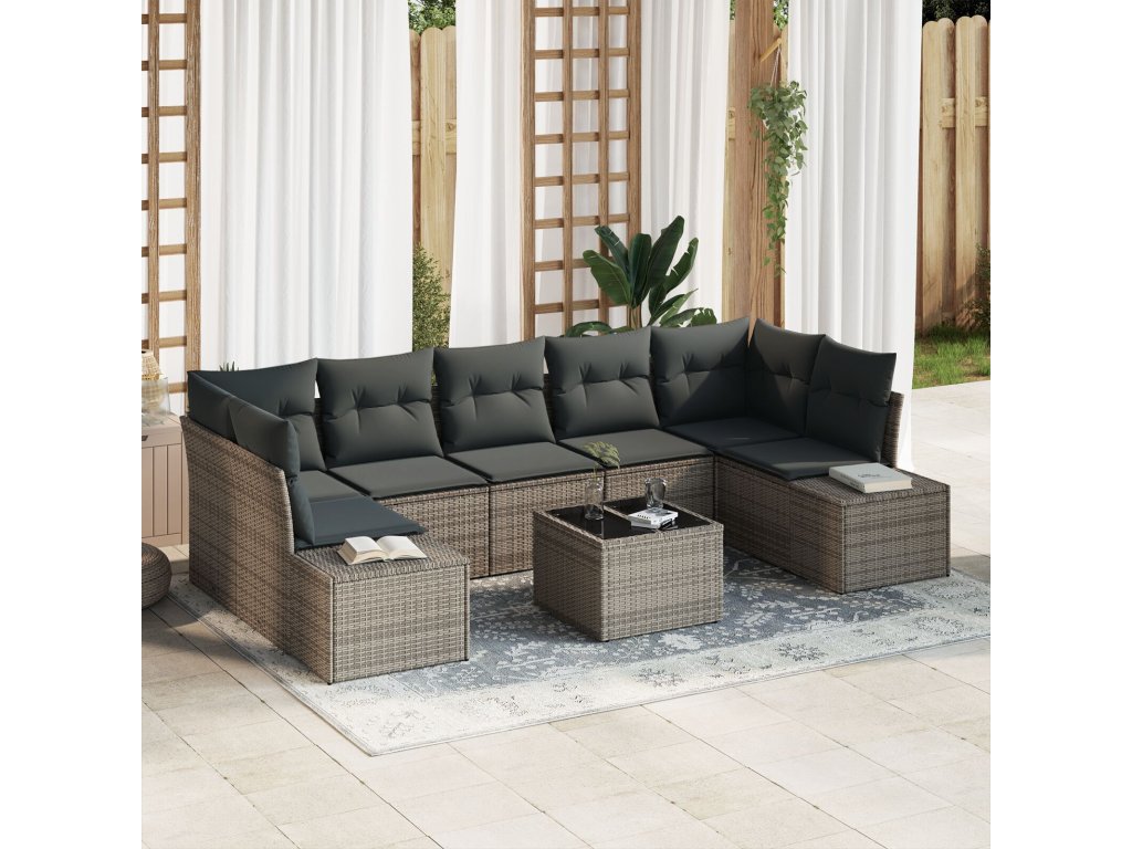 Sada zahradních pohovek 8 pcs Šedá Poly ratan