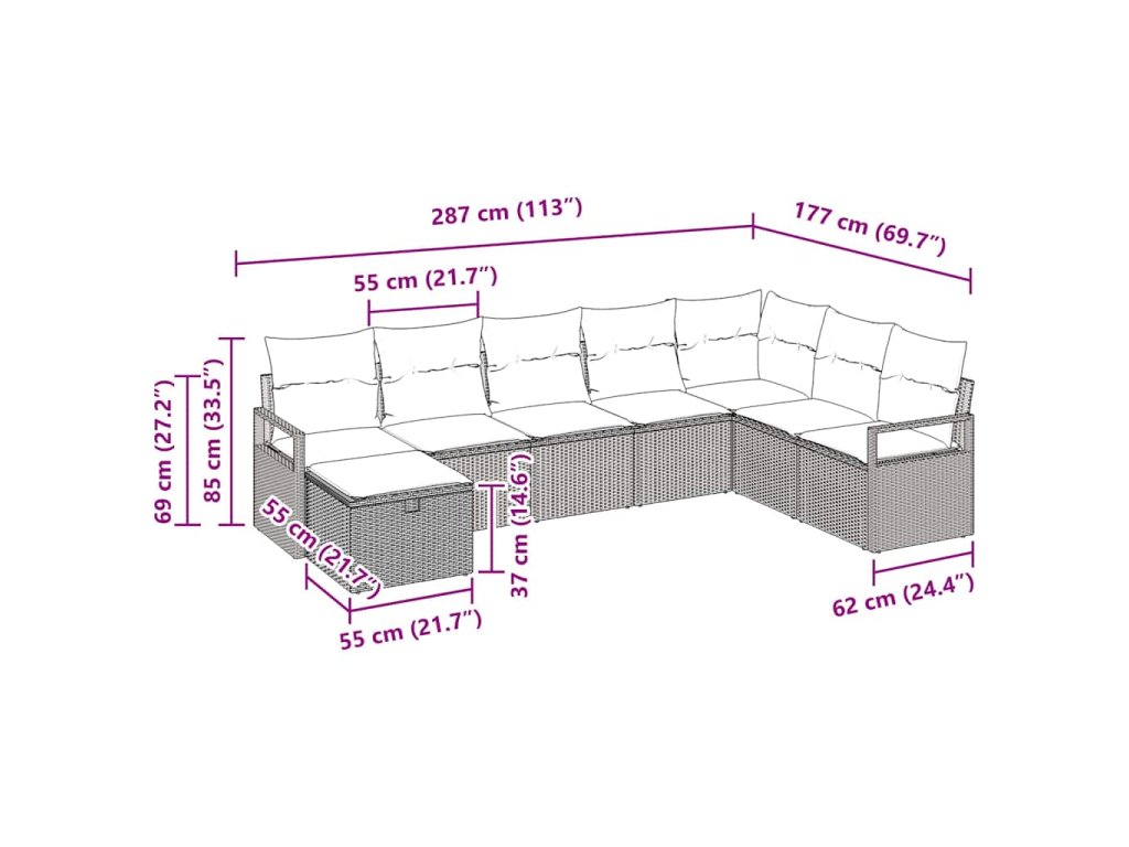 - Celkové rozměry: 287 x 177 x 85 cm (D x Š x V)