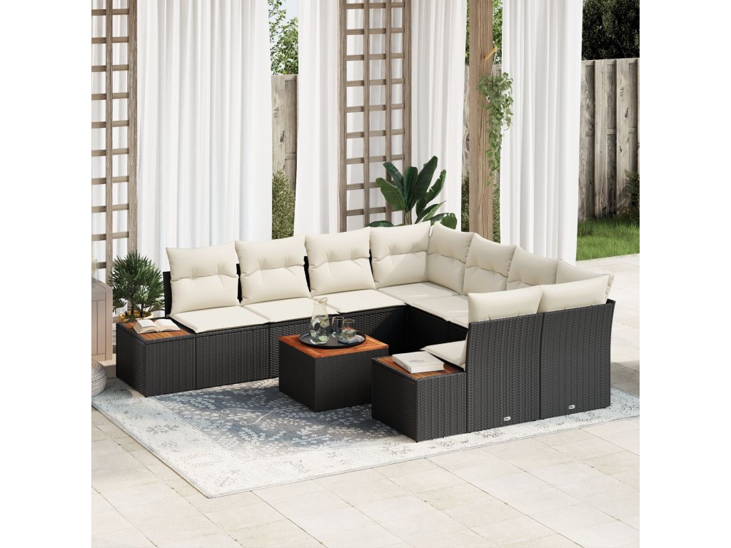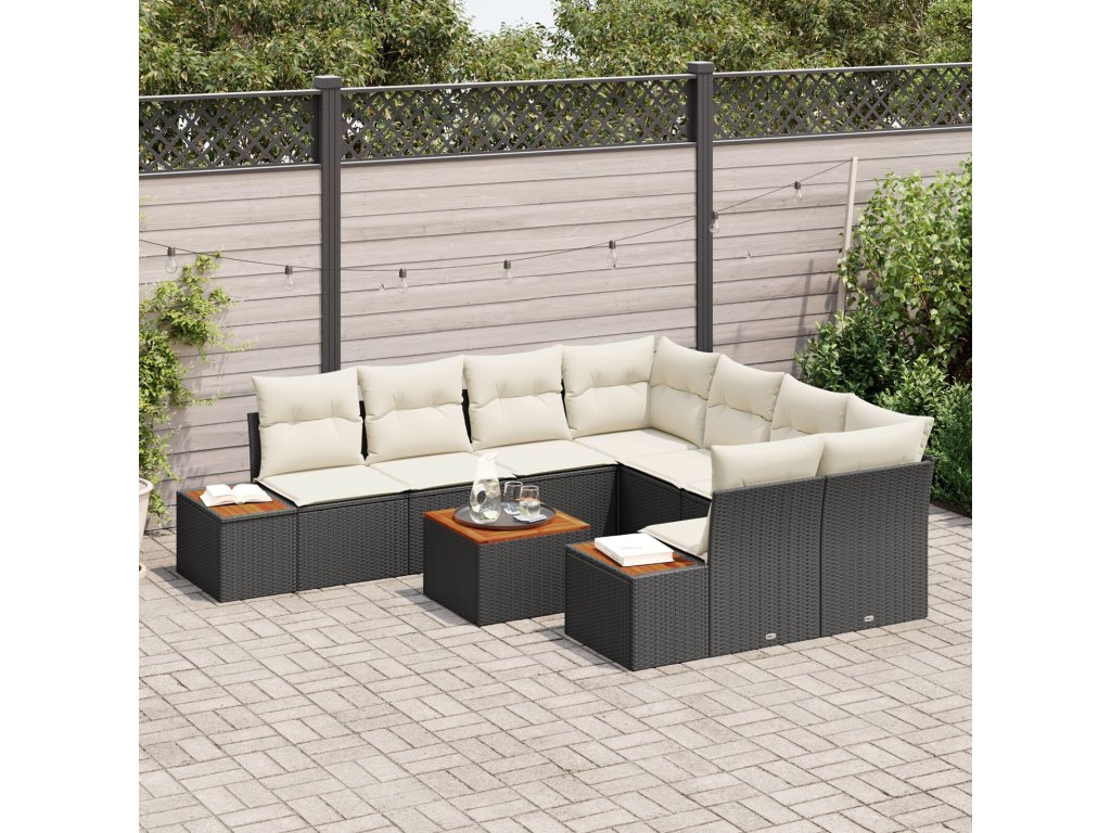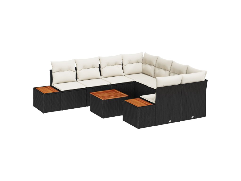 Sada zahradních pohovek s polštářem 9 pcs Černá Poly ratan