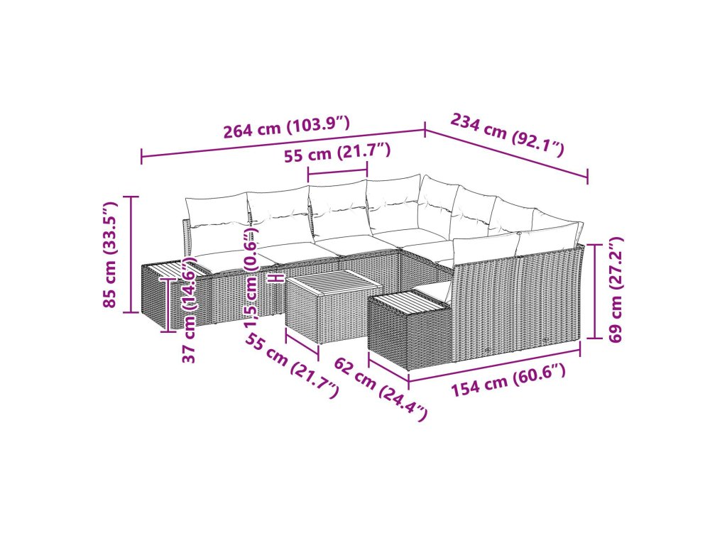 Materiály: Tohle je vyrobené z polyratanu, co zvládá venkovní podmínky, spolu s robustním akátovým dřevem, co dodává přirozený vzhled. Zahrnuté komponenty: Souprava obsahuje 4 centrální sedadla, 2 rohové sedadla a 2 boční pohovky s polstrováním, navíc odpovídající stůl. Vlastnosti / Funkce / Design: Užívej si lehký design, co zvládne počasí a UV záření. Polštáře se zipem nabízejí extra pohodlí pro dlouhé chvíle odpočinku a snadnou údržbu. Doporučené použití: Perfektní pro zahradní terasy, dvorky nebo prostory u bazénu, nabízí dost místa pro rodinu a přátele. Sestavení podle tvých potřeb přidá místu styl a funkčnost. Údržba: Používej ochranný kryt pro ochranu před počasím a čisti jemnou, mokrou utěrkou, abys udržel její vzhled.- Barva: Černá