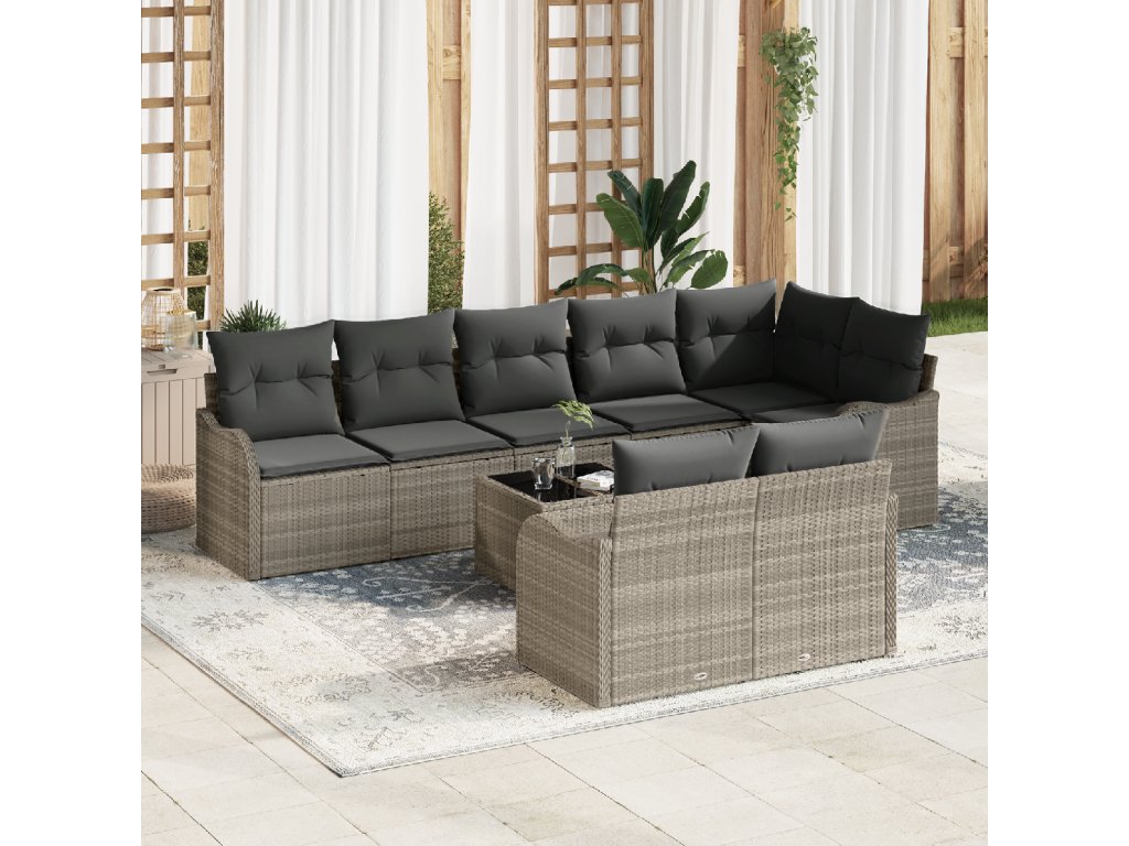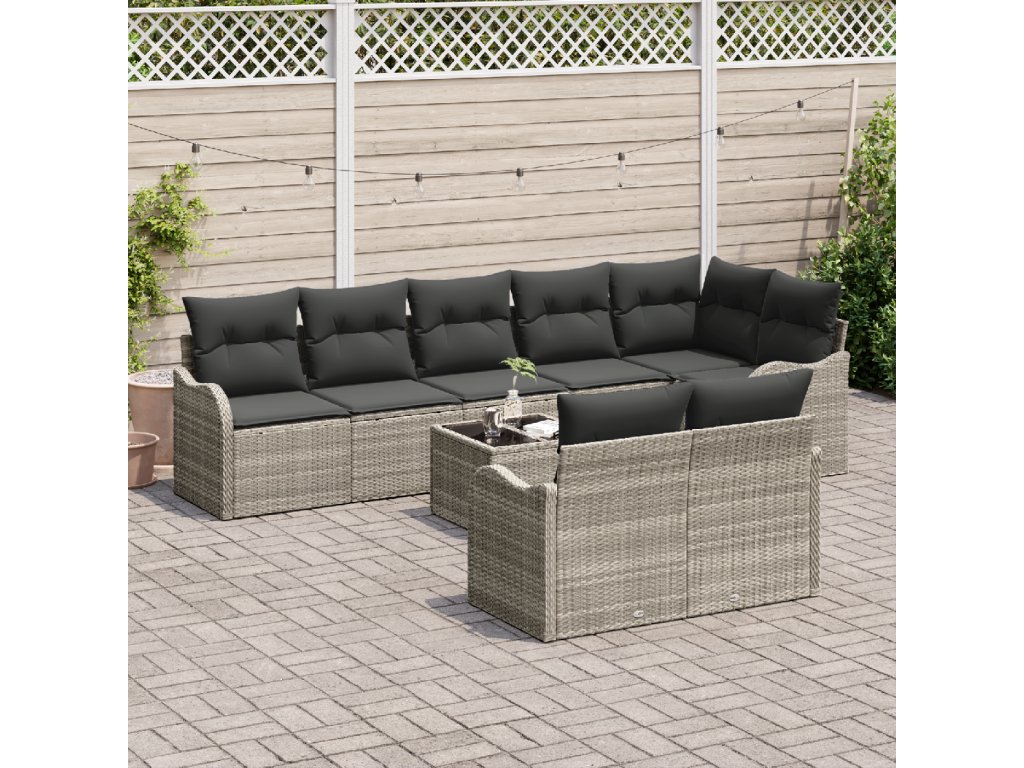 Sada zahradních pohovek 9 pcs Světle šedá polyratan