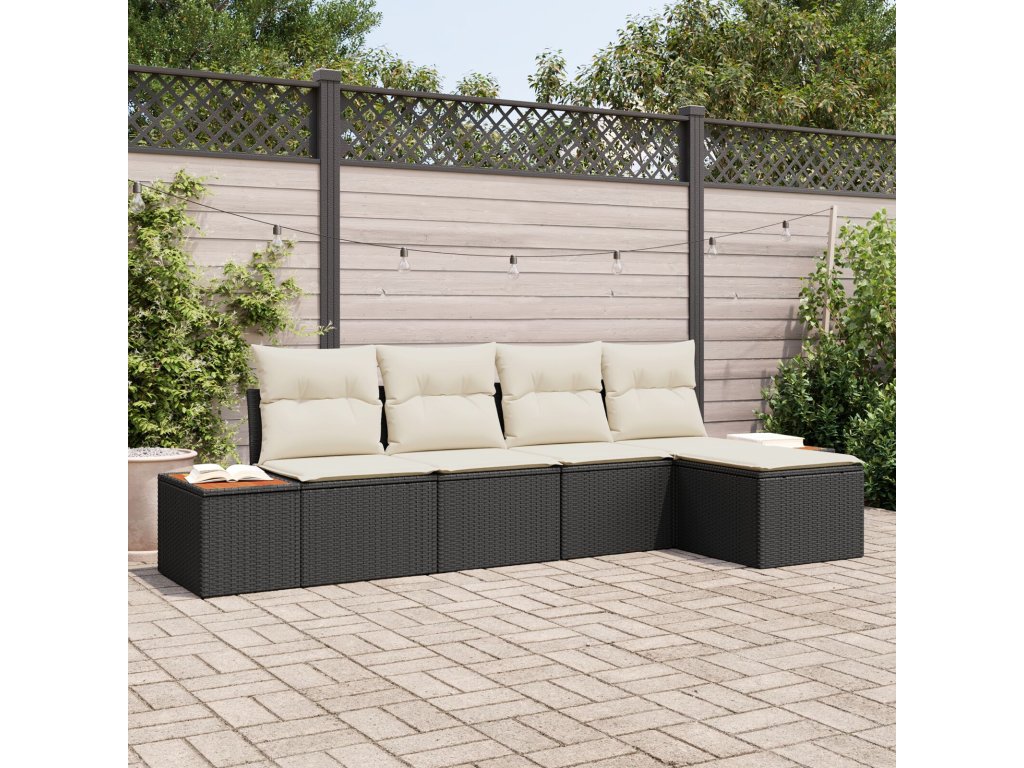 Sada zahradních pohovek s polštářem 5 pcs Černá Poly ratan