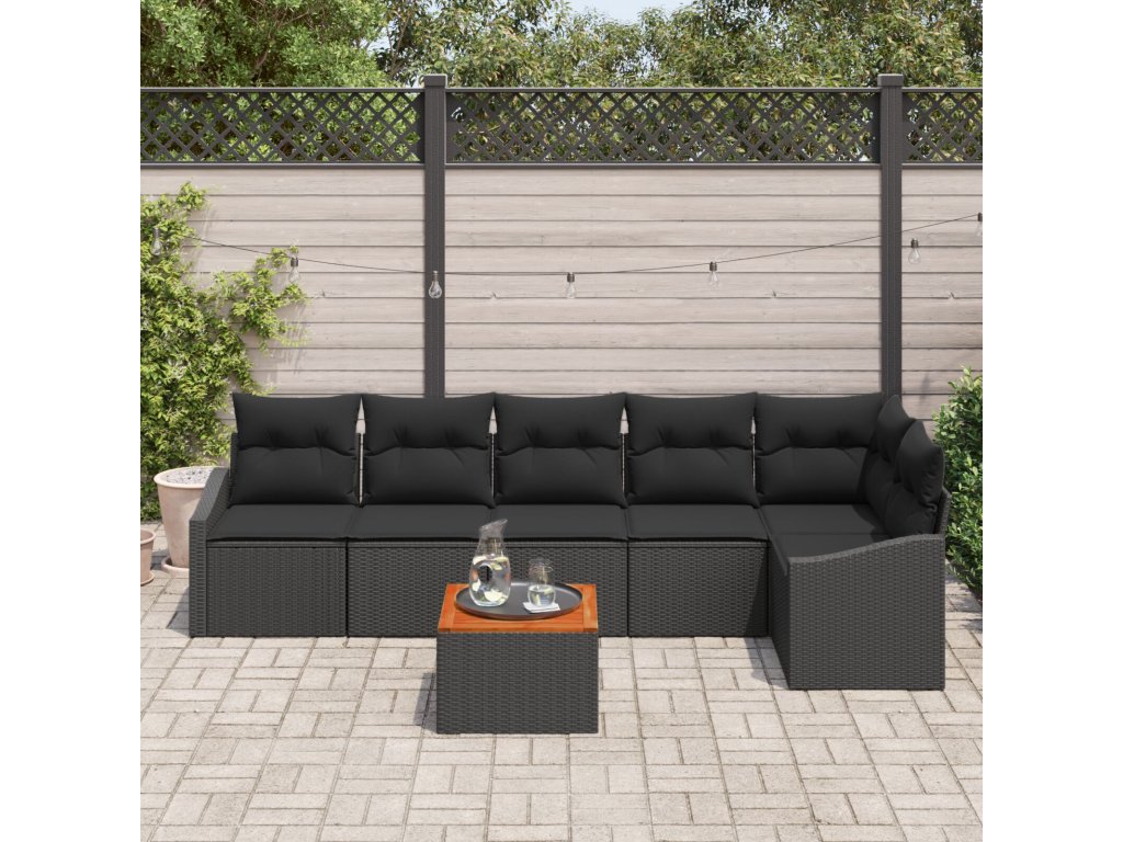 Sada zahradních pohovek s polštářem 7 pcs Černá Poly ratan