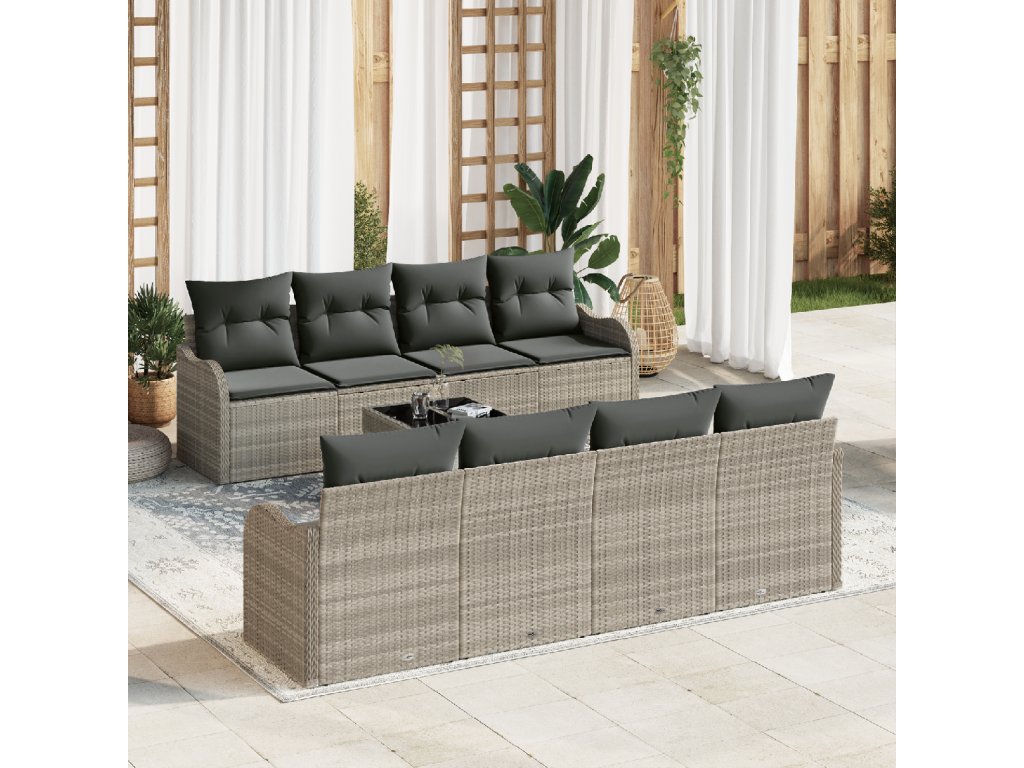 Tato současná zahradní sedací souprava je stylová a pohodlná pro venkovní prostory. Kombinuje moderní design s praktičností, což ji dělá ideální pro zahrady nebo terasy. Obdélníkový tvar je univerzální, snadno se přizpůsobí jak intimním šichtám, tak větším akcím.