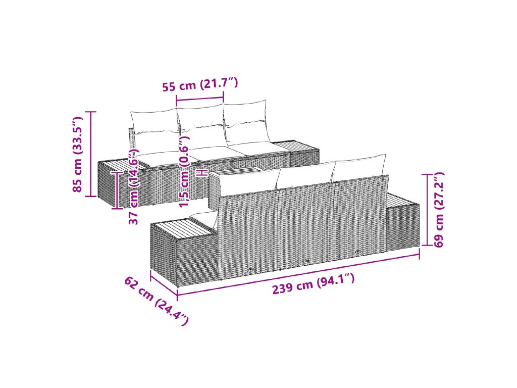 Sada zahradních pohovek s polštářem 7 pcs Šedá Poly ratan