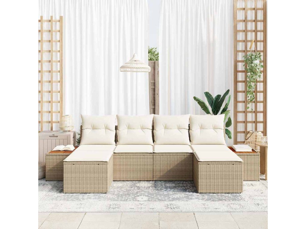 Sada zahradních pohovek 6 pcs Béžová a krémová Poly Ratan