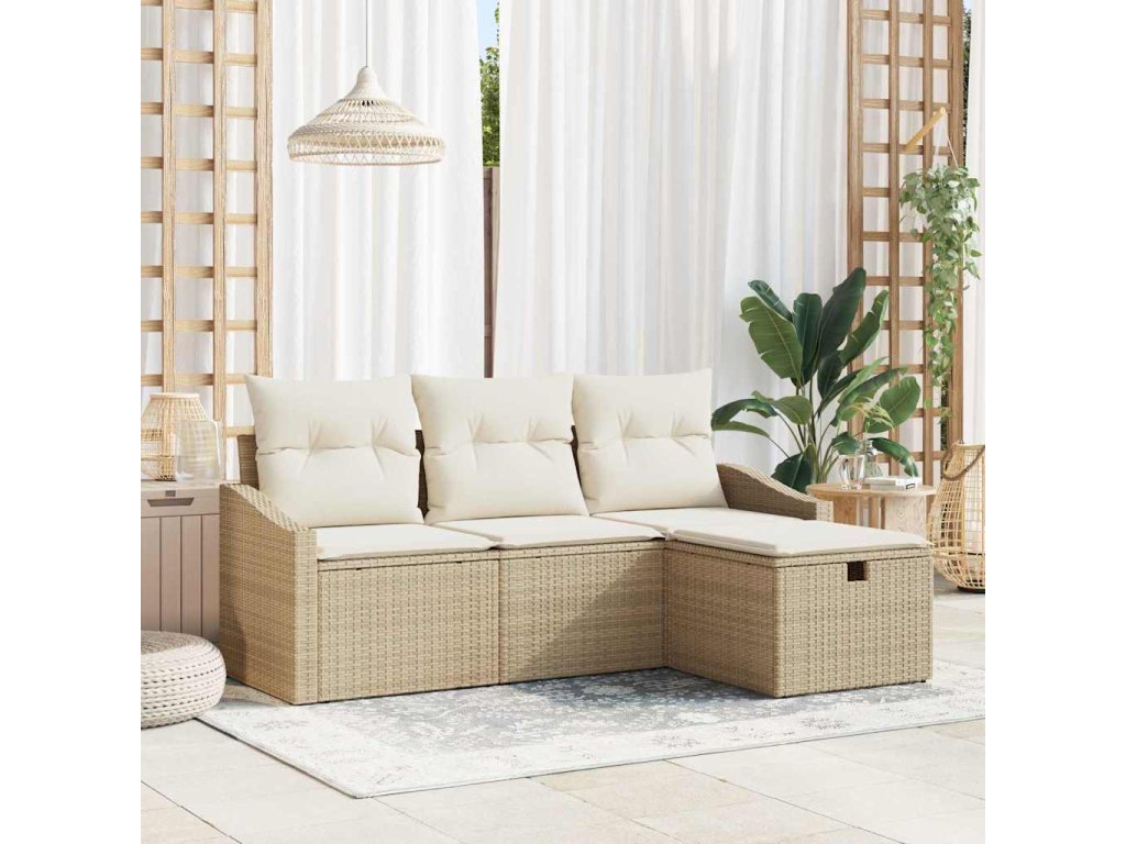 Set pohovek s polštářem s úložištěm 4 pcs Béžová polyratan