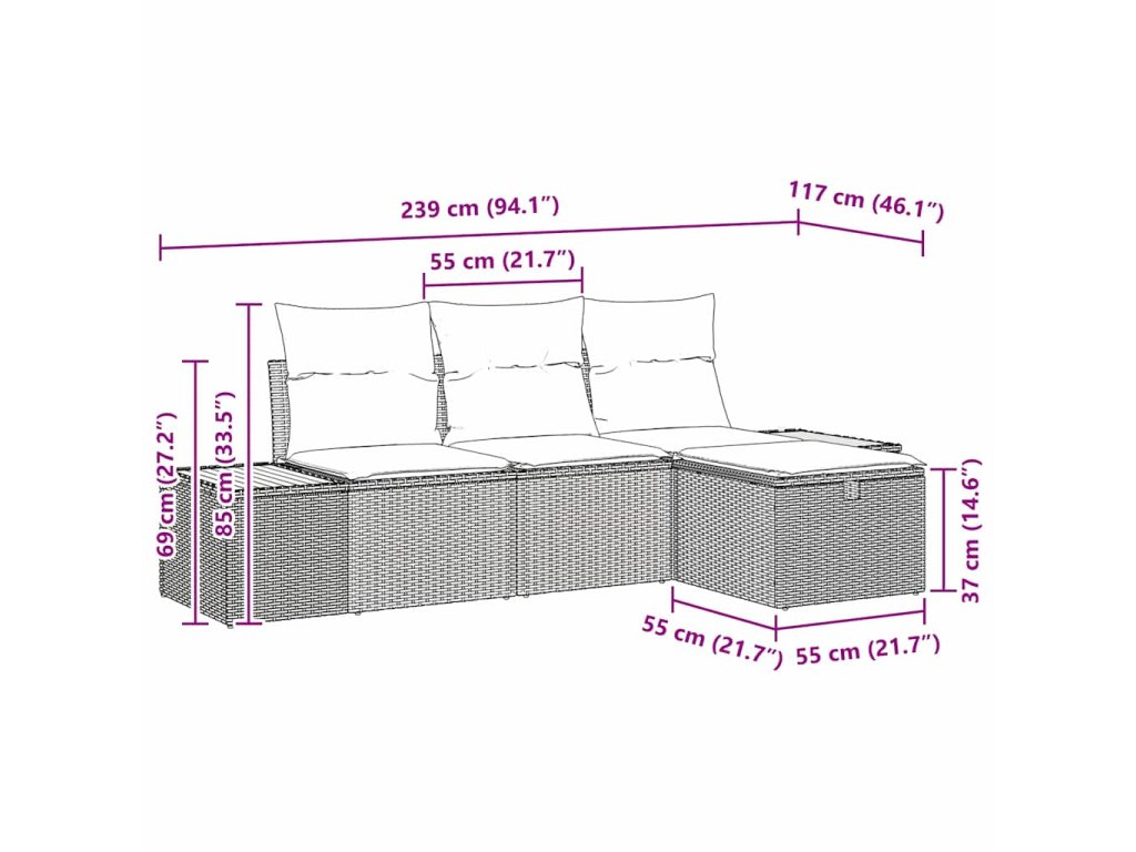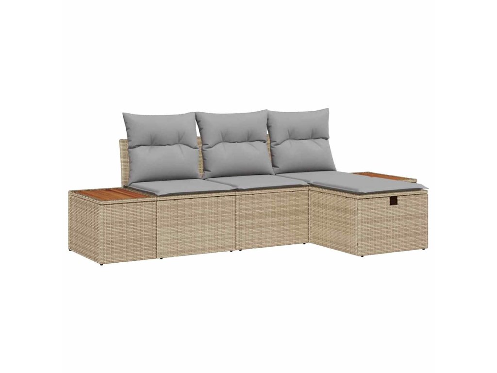 Sada zahradních pohovek s polštářem 4 pcs Béžová Poly ratan