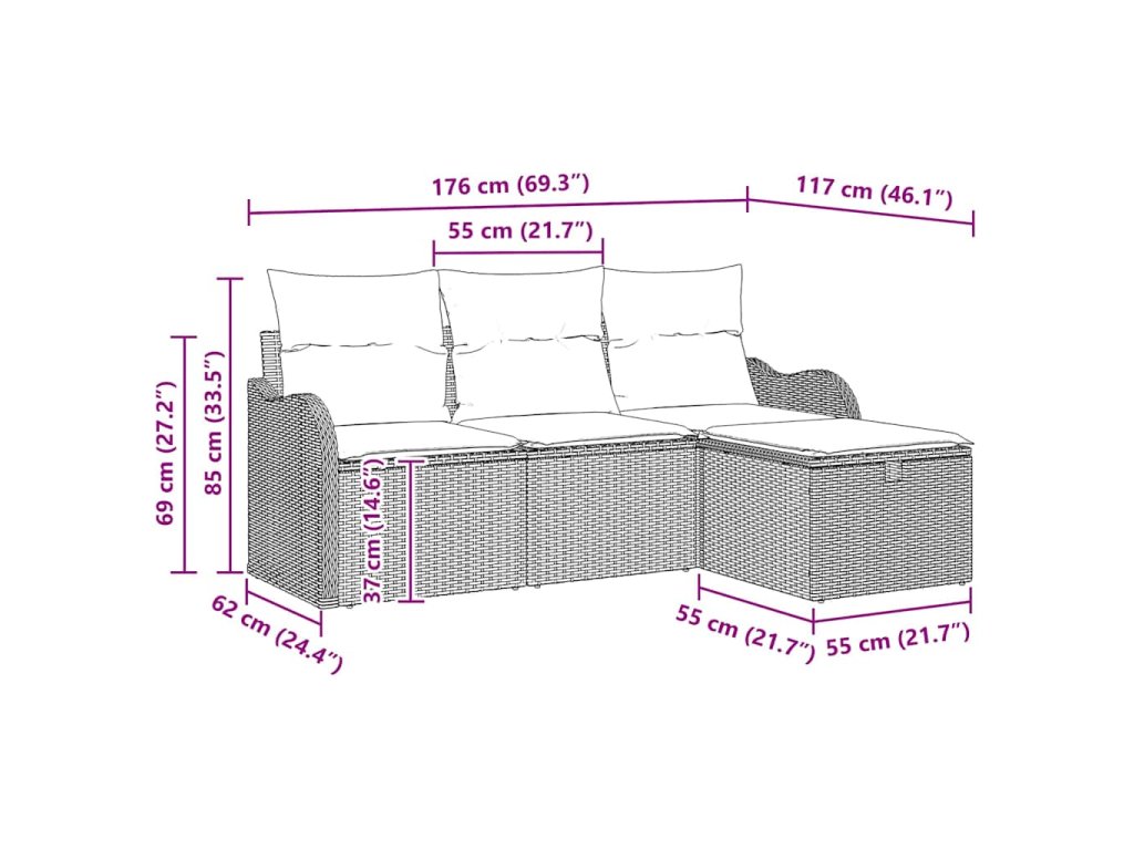 - Materiály: Vyrobená z odolného poly ratanu a pevného ocelového rámu s práškovým nástřikem, ta pohovková sada je navržená tak, aby vydržela a odolávala počasí. Krásný vzhled ratanu dodává eleganci a pohodlné polyesterové polštáře se snadno udržují a poskytují dlouhotrvající relaxaci v jakémkoli venkovním prostoru.
