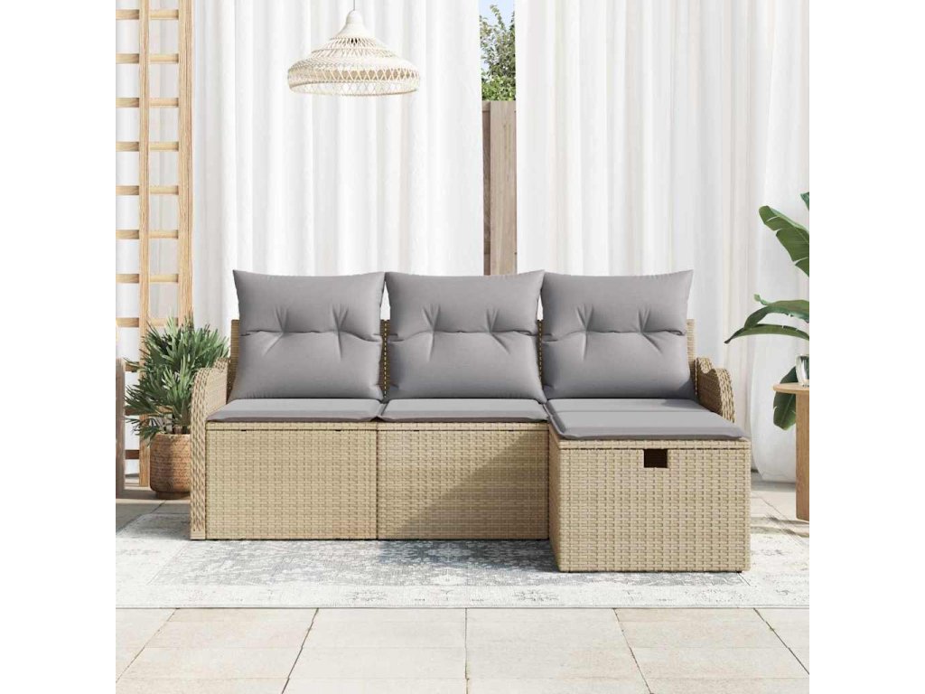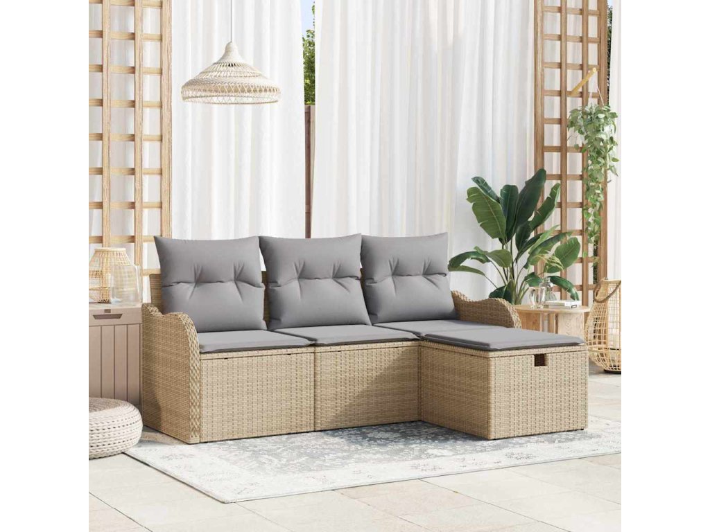 Sada zahradních pohovek s polštářem 4 pcs Béžová Poly ratan