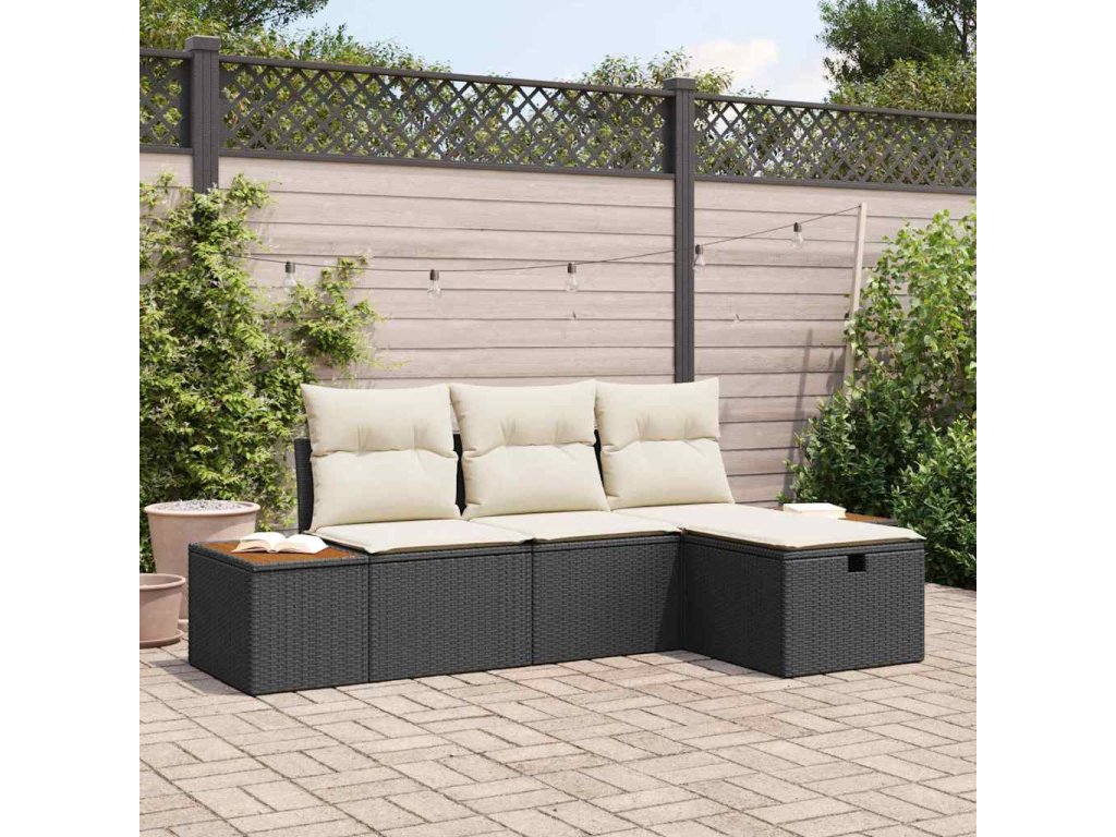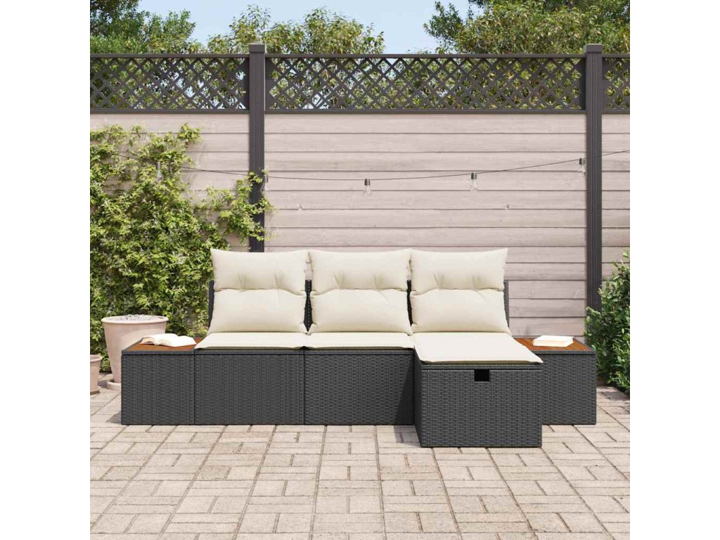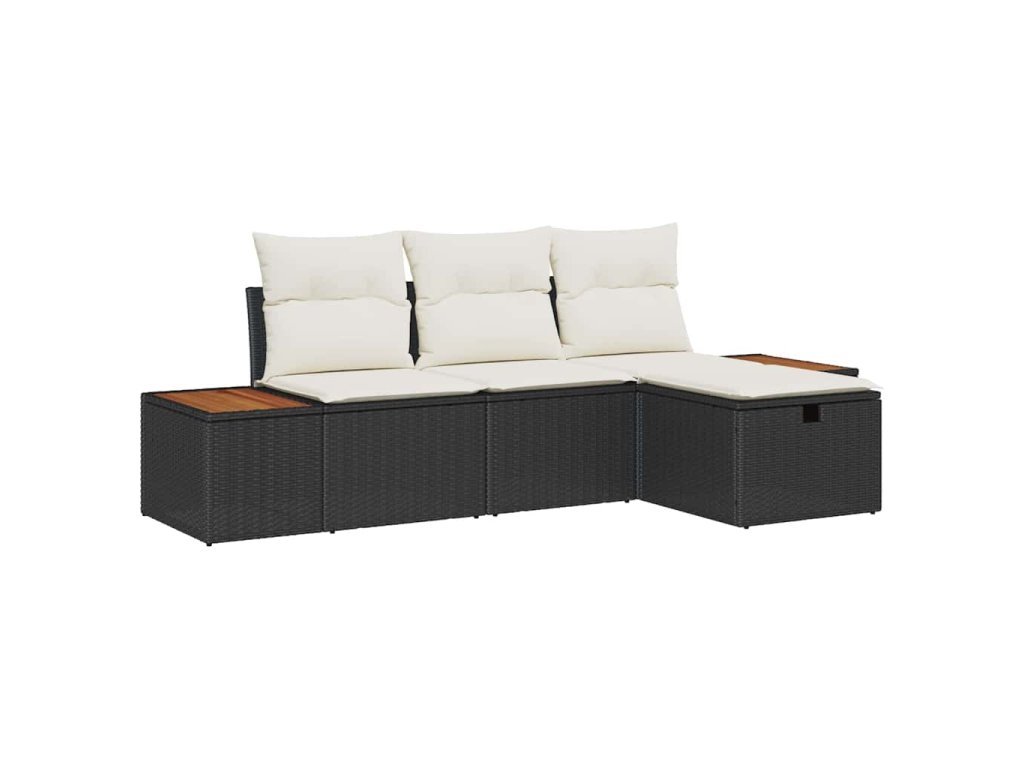 Sada zahradních pohovek s polštářem 4 pcs Černá Poly ratan