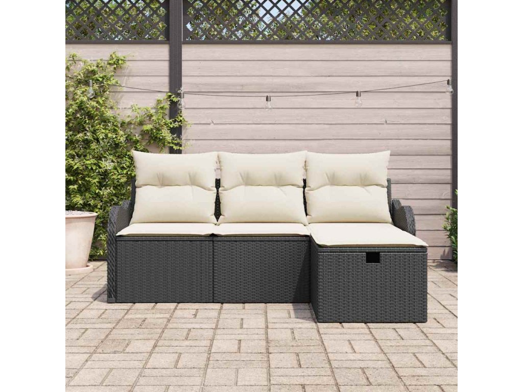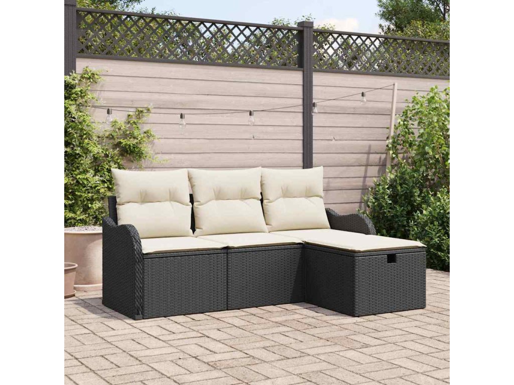 Sada zahradních pohovek s polštářem 4 pcs Černá Poly ratan