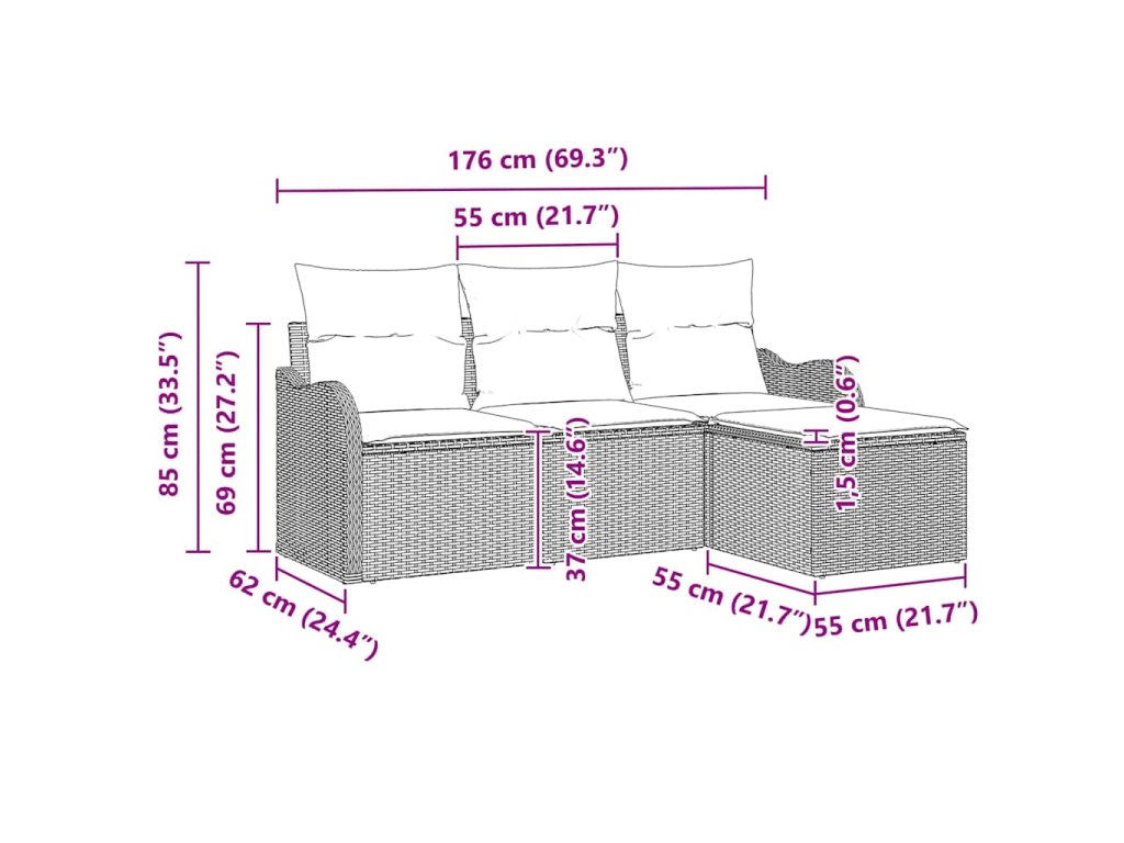 - 1 x Podnožka: 55 x 55 x 37 cm (D x Š x V)