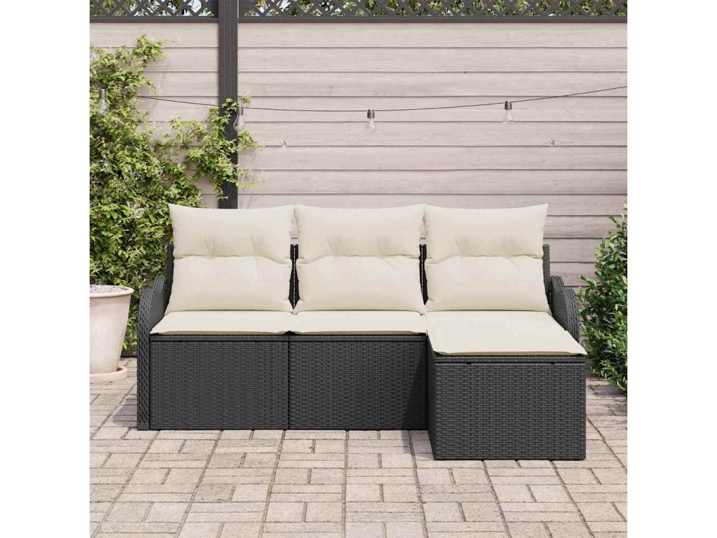 Sada zahradních pohovek s úložištěm 4 pcs Černá polyratan