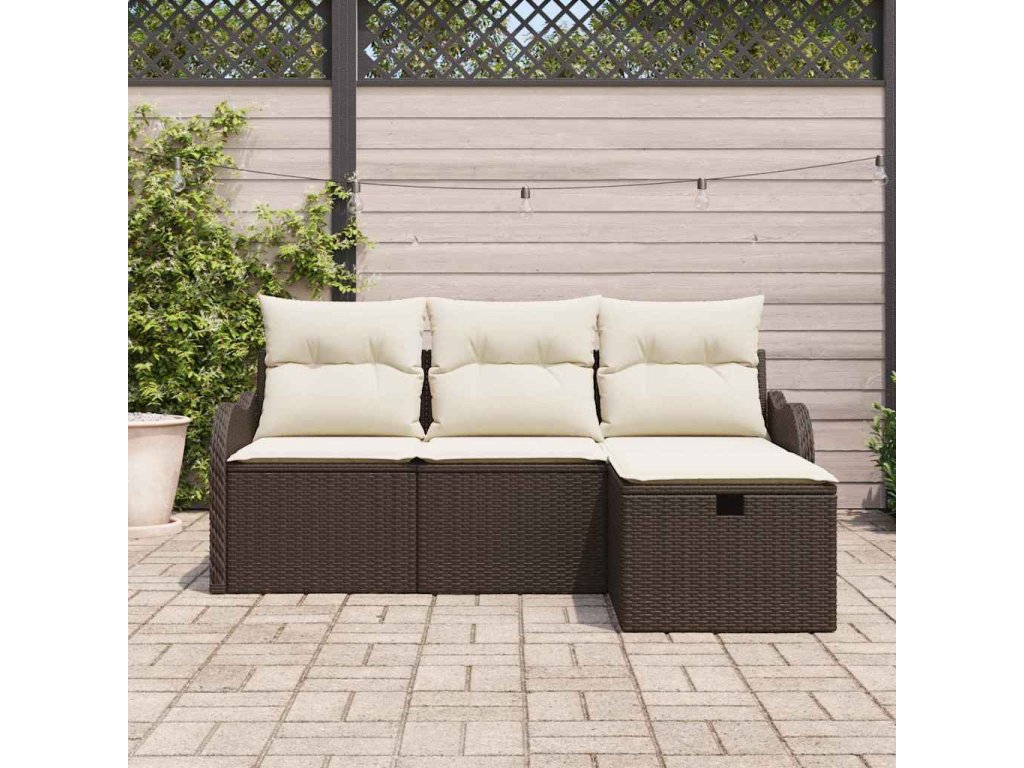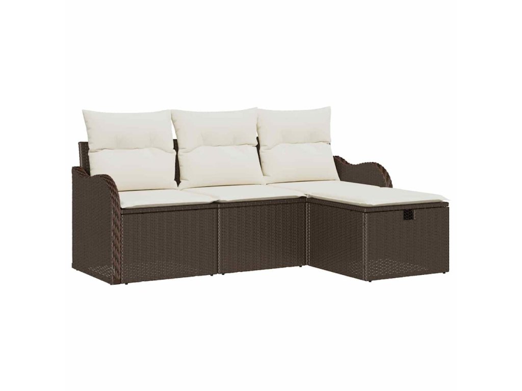 Sada zahradních pohovek s polštářem 4 pcs Hnědá Poly ratan