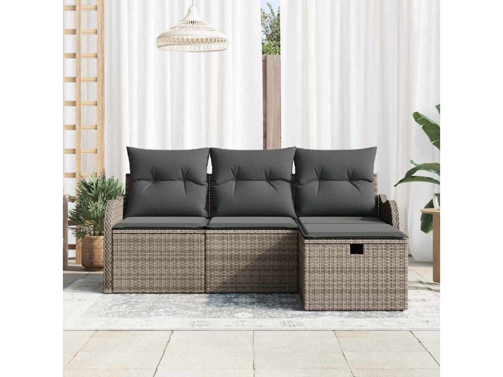 Sada zahradních pohovek s polštářem 4 pcs Šedá Poly ratan