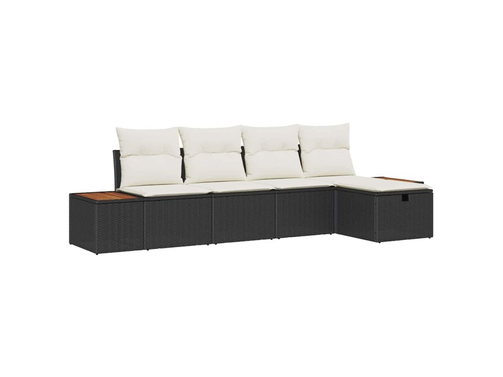 Sada zahradních pohovek s polštářem 5 pcs Černá Poly ratan