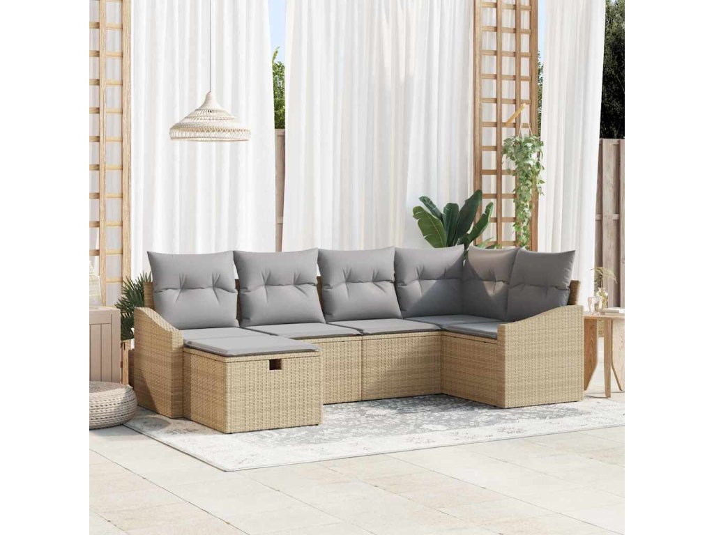Set pohovek s polštářem 6 pcs Béžová a Světle šedá polyratan