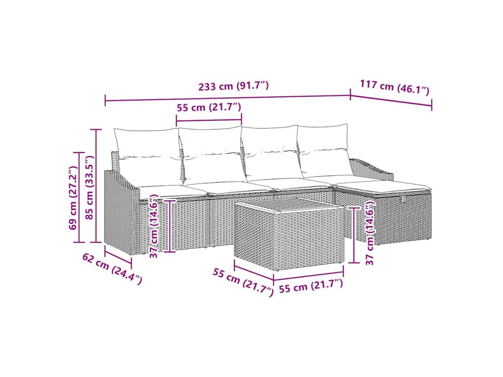 - Prvotřídní materiály Souprava je z odolného poly ratanového materiálu, co odolává špatnému počasí, takže bude hezky vypadat dlouho. A polyesterové polštáře jsou pohodlné a snadno se udržují.