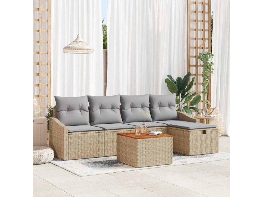 Sada zahradních pohovek s polštářem 6 pcs Béžová Poly ratan