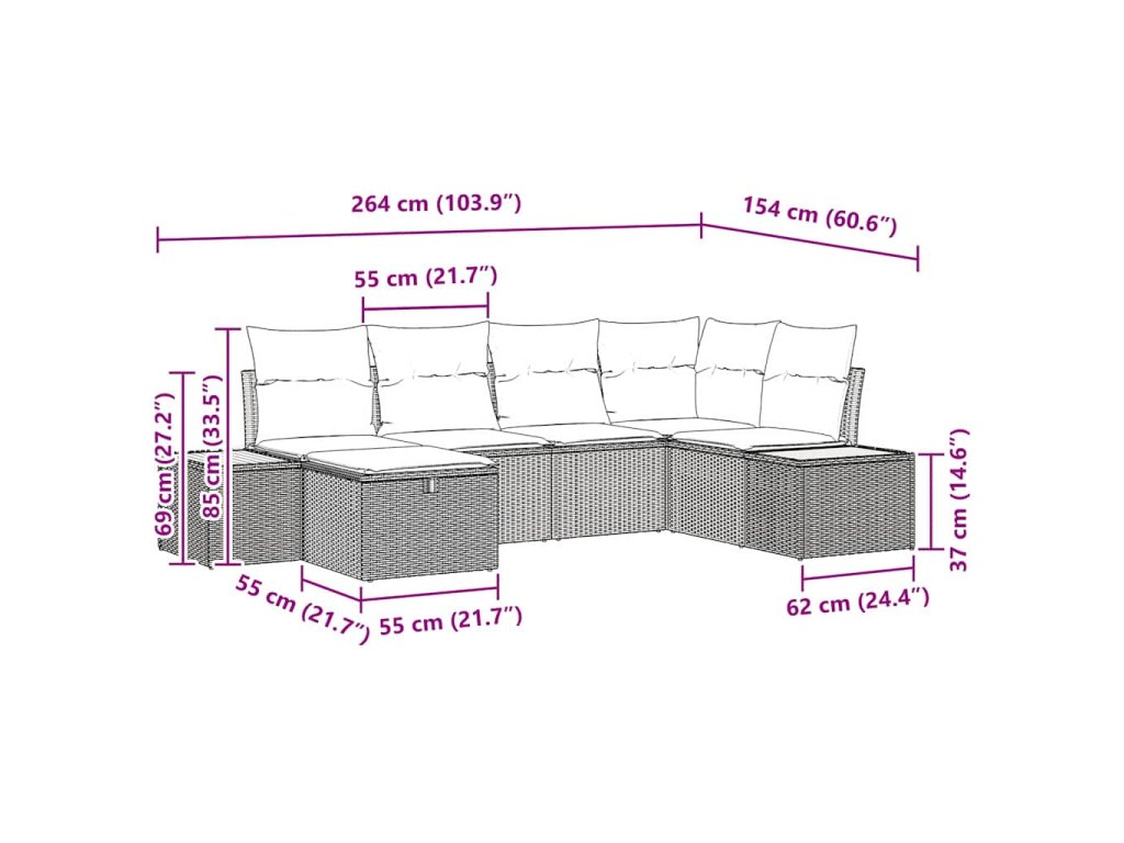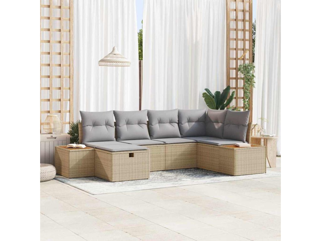 Sada zahradních pohovek s polštářem 6 pcs Béžová polyratan