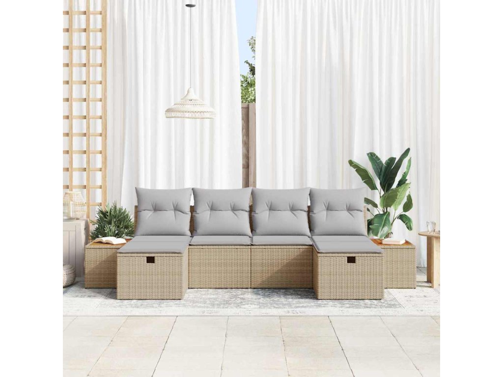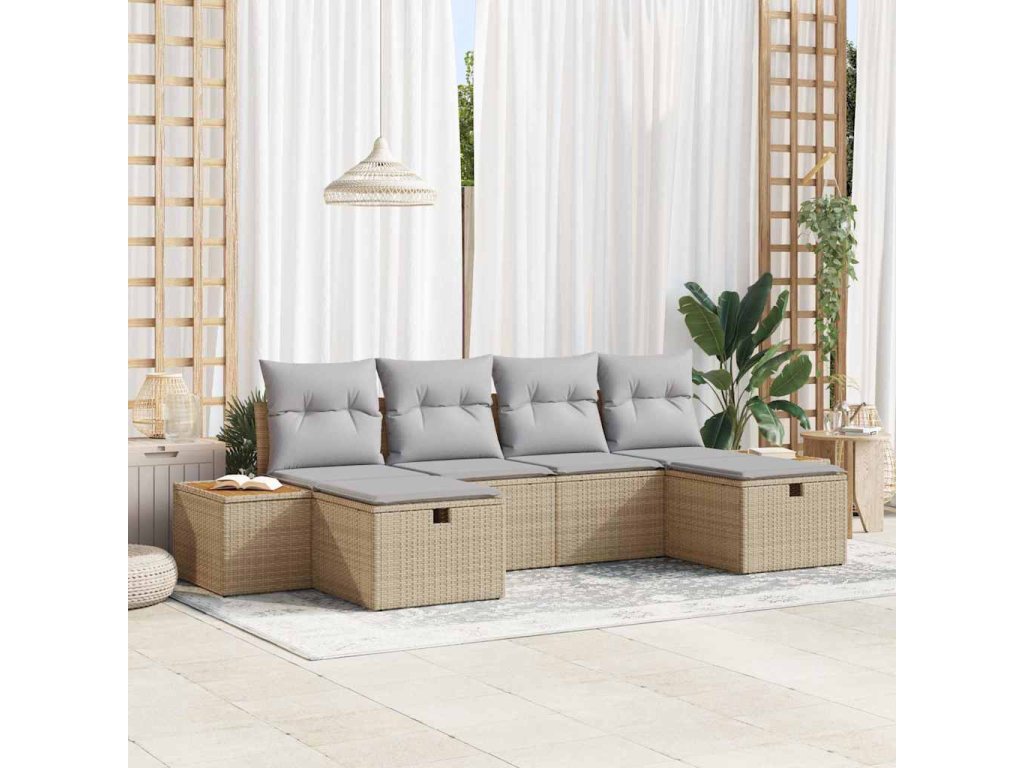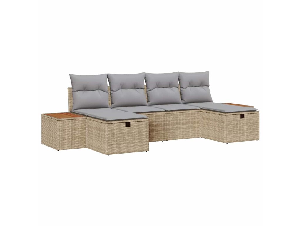 Sada zahradních pohovek s polštářem 6 pcs Béžová Poly ratan